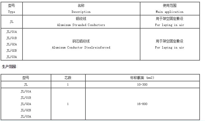 本產(chǎn)品適用于架空電力線路。產(chǎn)品執(zhí)行GB/T1179-1999《圓線同心絞架空導(dǎo)線》標(biāo)準(zhǔn)。